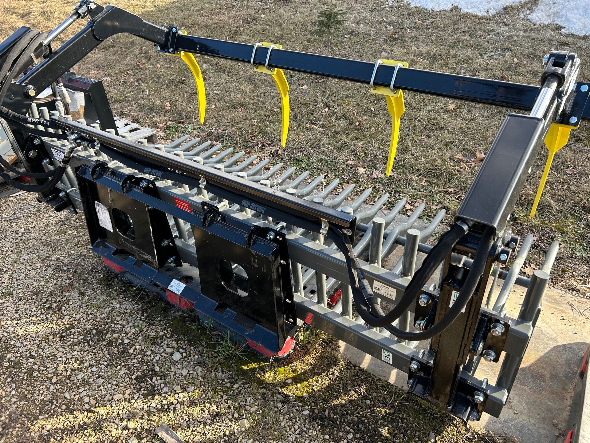 The MDS 84” Silver Bullet Rock Bucket w/4 tine Grapple will save you hours of time and effort. Super though 1045 hardened tines, integrated “rock dam”. Available for Skid Steers, Telehandlers, and over 85 different Tractor Loaders.