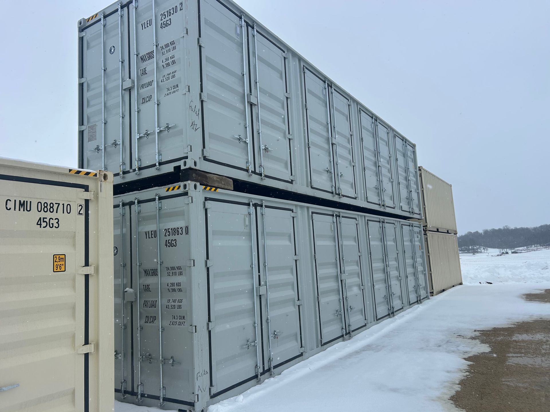 TWO NEW 40 Foot High Cube OS, 4 doors on the side, and one door on the end. Eight vents. Sweet container. Inspections are welcome.