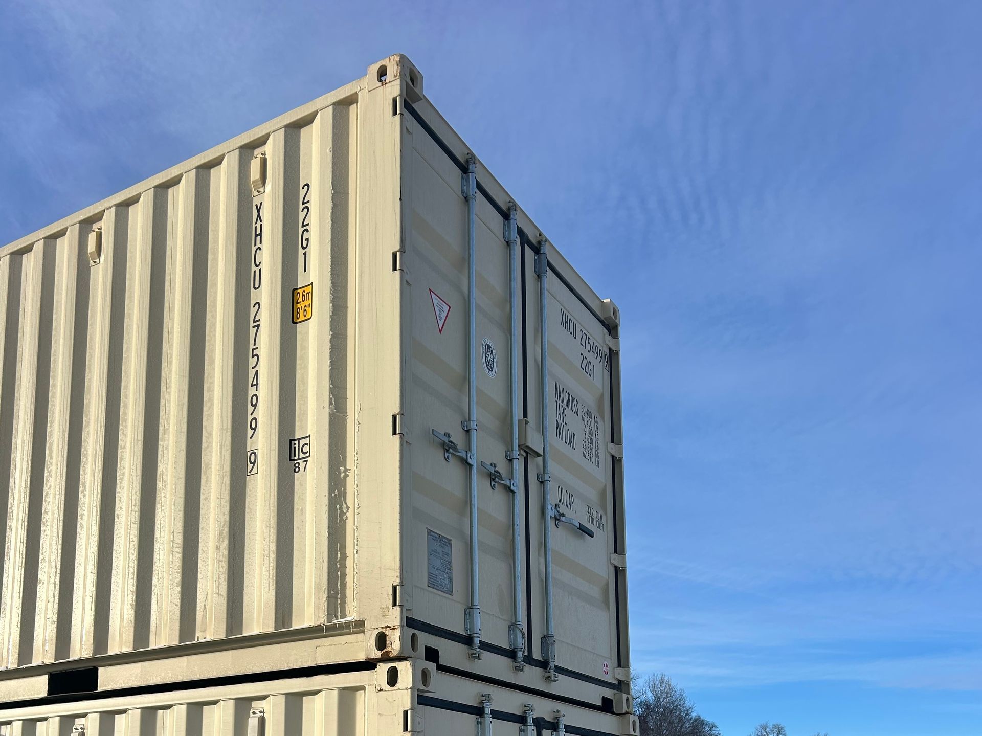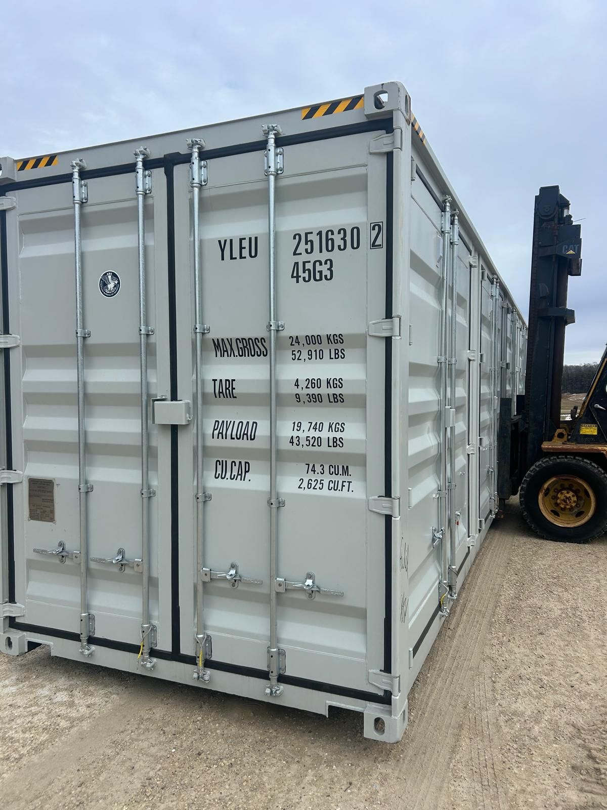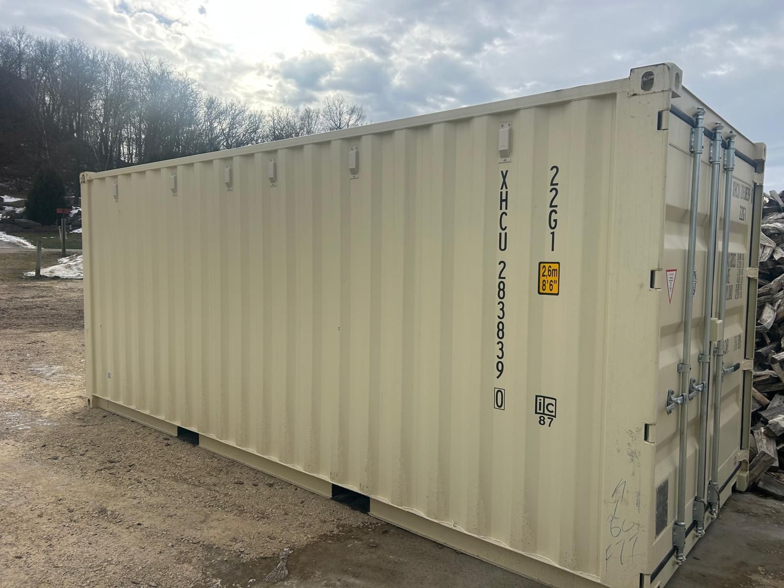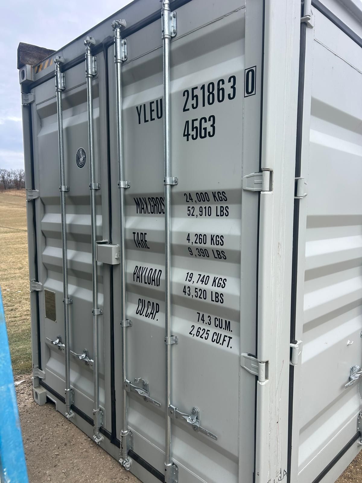 New (2025) 20' easy-open doors Container with 12 vents. Standard 8' 6" high x 20' long.