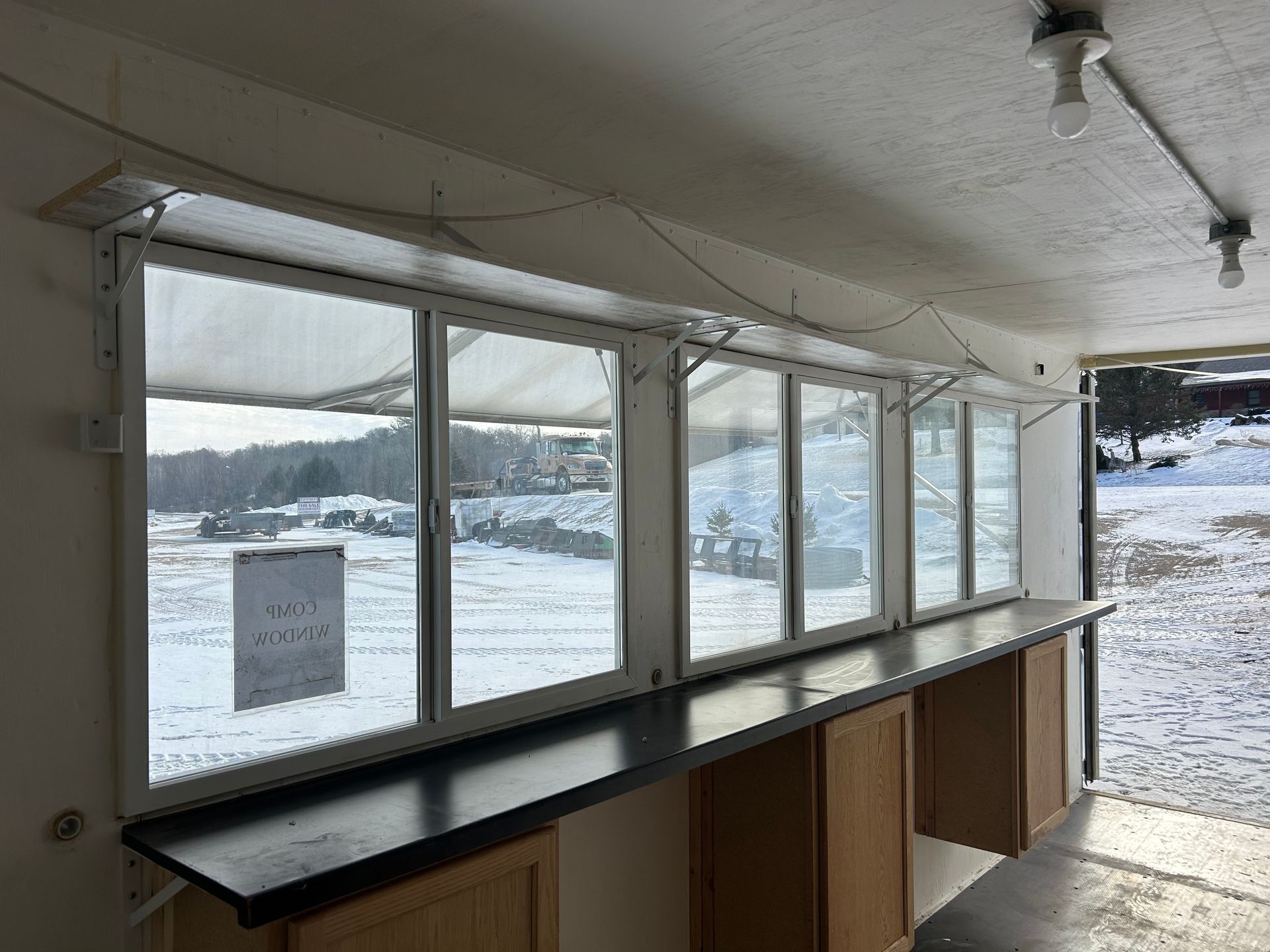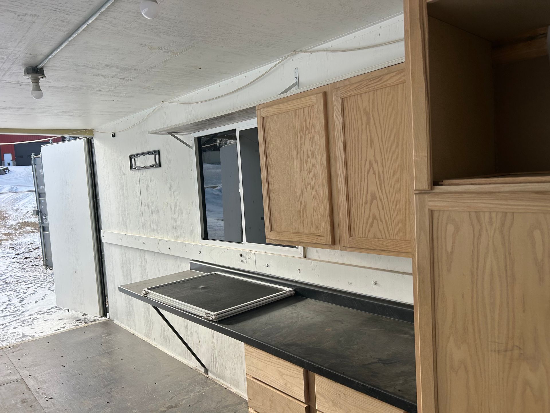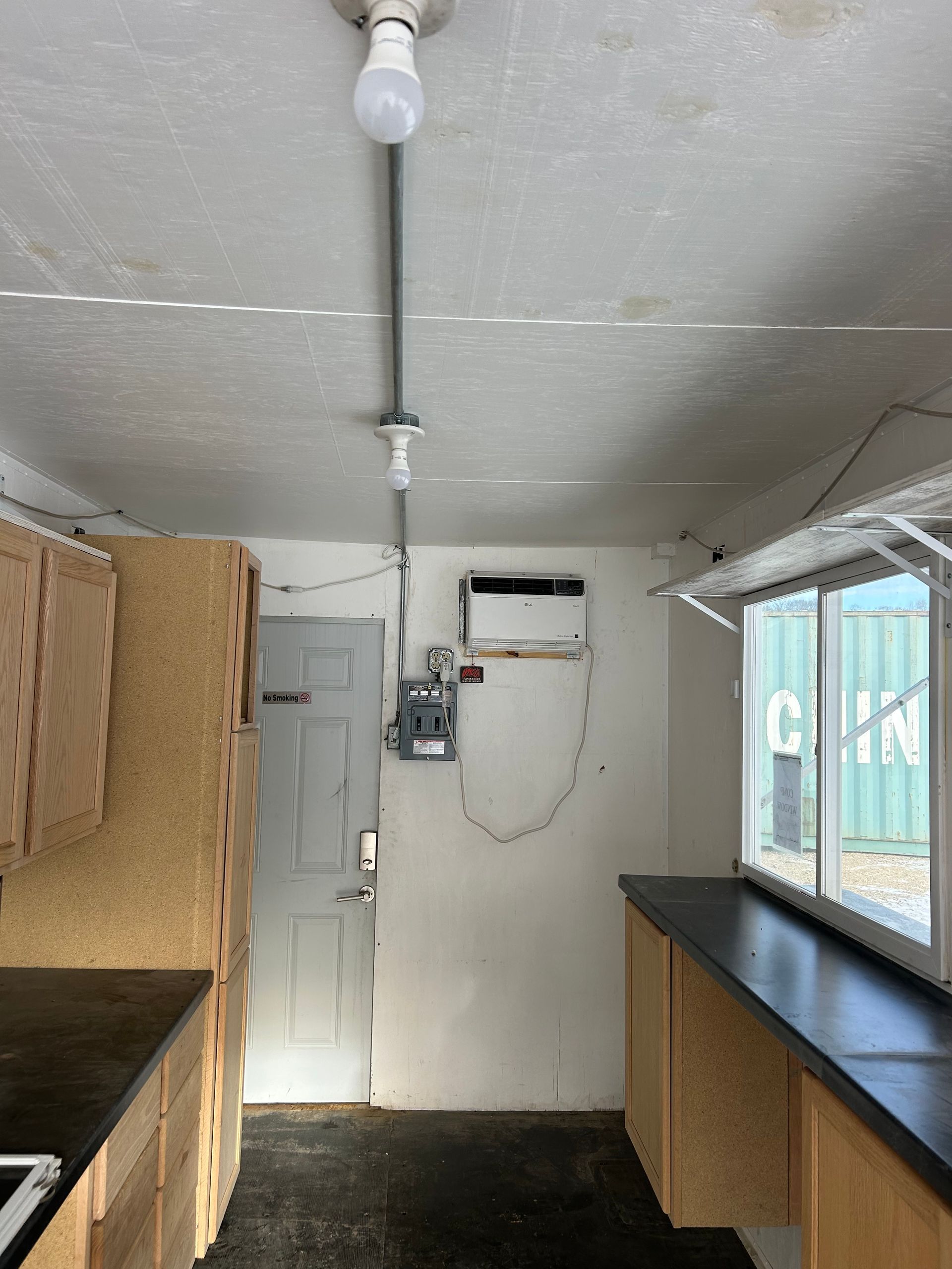 Insulated and lined with CDX Plywood, wired for lights and receptacles. AC unit, motion-activated light, solar-powered outside light fixtures, and Hardwood cabinets. Clean! Many applications!